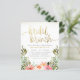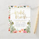 Este convite para brunch bridal apresenta um arranjo de flores aquarelas em tons de rosa e branco em verde-jardim rústico. "Bridal brunch" é escrito na caligrafia moderna, com espirais em qualquer extremidade que chegam ao limite do convite. Os detalhes do seu chá aparecem abaixo em uma simples tipografia. Como parte da seleção orçamental aqui no Zazzle, estes convites não vêm com envelopes nem ajustado perfeitamente num envelope de tamanho padrão. O tamanho mais próximo é A6, mas haveria um intervalo de aproximadamente meio polegada. Se não se importar com isso, você pode usar envelopes A6 tão disponíveis. Caso contrário, esse design pode ser transferido para um formato padrão 5x7 (que vem com envelopes) usando a ferramenta de transferência design.