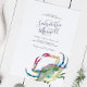 Neste verão, o convite para chás apresenta seus nomes definidos em uma tipografia de script manuscrito na moda com detalhes de evento em uma seringa de cinza de carvão clássico, se houver, em um fundo branco nítido. Meu caranguejo de aquarela original em tons de vermelhos, azuis e verdes enfeita a frente. A placa de convite reverte para uma cor azul-marinho complementar. Uma técnica costeira, mas elegante, para a praia casual da Nova Inglaterra, casais ou chás de panela náuticos ou de Verão. Para ver toda a minha suíte de papelaria de casamento, visite DoTellABelle no Zazzle.