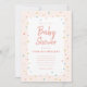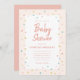 Um convite de chá de fraldas cômico com bordas de bordas borrifadas de arco-íris em um fundo cor-de-rosa pincelado.