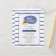 Cartão de convite para o Chá de fraldas de tema náutico branco com um farol com um padrão de onda roxa leve em fundo tanto na frente como no verso do cartão. Adicione seus detalhes a esta placa clicando no botão "Personalizar" acima. Para mais personalização, use o botão "Personalizar" e a nossa ferramenta de personalização para modificar esta modelo.