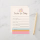 Apresentamos nosso coração e personalizáveis "Desejos por Bebê!" Jogo do chá de fraldas. Crie uma experiência verdadeiramente memorável e sentimental para os pais estarem com este jogo delicioso. Com o seu vibrante esquema de arco-íris e cor-de-rosa e o adorável tema "É uma Rapariga", este jogo irá adicionar um toque de charme à sua festa de chá de fraldas. Criados com materiais de alta qualidade, nossas folhas de jogos são projetadas para facilitar o escrevendo e a durabilidade. Oferecem amplo espaço para os hóspedes anotarem os seus sentidos desejos e conselhos para o bebê precioso, criando um tesouro para os futuros pais. O jogo "Desejos por Bebê!" é uma bela maneira de celebrar a ocasião alegre e chá o pequeno com amor e bons desejos. Seus hóspedes serão tocados enquanto eles canetas suas mensagens sentidas, criando uma coleção de desejos e bênçãos que os pais podem acalentar por anos. Não se contente com jogos comuns. Torne sua festa de chá de fraldas extraordinária com nossos "Desejos por Bebê"! Jogo do chá de fraldas. Ordene agora e deixe o amor, o calor e o entusiasmo fluir à medida que seus hóspedes expressam seus sentidos desejos e sonhos pelo pequeno pacote de alegria!