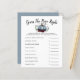 Cartão de chá de fraldas do tema da abóbora-branca com ilustração de uma abóbora azul com falso brilho prateado. Os textos são editáveis. Um jogo perfeito para jogar durante o chá. Enumera o essencial do bebê e aos hóspedes para adivinhar o preço. Quem quer que adivinhe o preço mais próximo ganha!