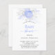 Para um Chá de fraldas celebrando um menino. Um fundo branco na moda. Decorados com flores claras, azuis e brancas, rosas e folhagem de prata falsa. Personalize e adicione um nome e detalhes da parte.