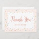 Um chá de fraldas de aspersão para bebês, branco, obrigado a anotar uma placa com borda de aspersão arco-íris sobre um fundo rosa esbranquiçado. A parte traseira desta placa é intencionalmente vazio à esquerda para permitir que você adicione uma mensagem pessoal personalizada.