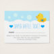É um menino! Você está planejando um banho de bolha ou um chá de fraldas temático de pato? O Cartão Raffle Fralda de Rapaz Ducky da Borracha é uma escolha adorável para chás de fraldas para rapazes. Ele apresenta um doce patinho amarelo com um coração azul em sua asa cercado por bolhas de banho. Este cartão de rifa ajudará a adicionar esse toque especial ao seu chá de fraldas. Não se esqueça de juntar o tema da festa com a coordenação de produtos projetados pela Enchantfancy Design Company.