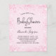 Para um chá de fraldas, comemorando um menino. Uma rosa claro, fundo cor-de-rosa. Decorado com pó de brilho falso. Personalize e adicione o nome da mãe e os detalhes da festa. O nome e o texto: Chá de fraldas são escritos com um script de estilo manuscrito