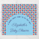 Um bebê doce de fruta está a caminho! Fruta de mirtilo e morango com padrão de tabuleiro azul e branco e arco de tendência