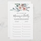 Chá de fraldas com o tema Boho rosa, adivinhem a idade da mamãe e do cartão de jogo do pai, apresenta uma ilustração rosa-d-água rosa e verde-d-água eucalipto garland e uma elegante fonte com estilo manuscrito.