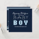 Chá de fraldas BOY Marinho Azul Convite Moderno Limpo. Personalize a frente e o verso.