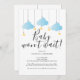 Chá de fraldas, cartão de cancelamento do bebê azul borrifador. O que quer que aconteça, o bebê não pode esperar, mesmo que o chá possa. Mantenha todos atualizados. Projetado por Thisnotme©