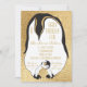 Chá de fraldas Convite Dourado Bebê e Pinguim Mamã