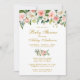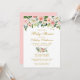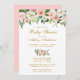 Placa de Convite para Chá de fraldas Floral Dourada e Branco, cor-de-rosa-d'água - Parte traseira rosa