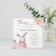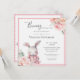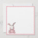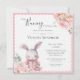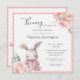 Um "coelho" está fazendo um convite para chá de fraldas de coelho bebê. Um belo coelhinho desenhado a mão num dorminhoco rosa. As cores suaves simples definem o tom de um doce chá de fraldas temático. Um convite tão doce e simples para esse evento especial. Coordenar o quadro azul escalado termina este adorável convite.