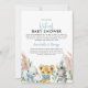 Um sexo bonito e desconhecido animais chás de fraldas em máscaras cobiçam o chá de fraldas virtual. Folhagem botânica de flores brancas e elefante, leão e zebra em máscaras faciais. Texto de script, parte de uma coleção disponível de diferentes maneiras de cores.