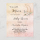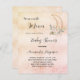 Para um chá de fraldas moderno estilo boho. Um fundo rosa dourado, rosado, rosado e roxo, com aspecto metálico. Decorado com uma lua, flores e eucalipto verde. Personalize e adicione um nome e detalhes da parte.