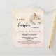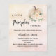 Um fundo de rosa dourado e gradiente cor-de-rosa esmagado, decorado com uma abóbora e flores de cor creme. Personalize e adicione o nome e os detalhes da festa. Texto: Um pouco de Abóbora está a caminho. 1 folha = 1 convite impresso de borda a borda.