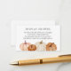 Cartão de solicitação de chá de fraldas para presentes não empacotados para um chá de exibição. Apresentando abóboras com o poema de solicitação "Seu belo presente será colocado em exibição, de modo que não seja preciso enrolar. um presente não embrulhado é tão doce, e economizará mais tempo para se misturar e comer."
