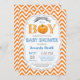 Convite Ao Chá de fraldas De Abóbora. Convite para Chás de fraldas de outono. Convite para Chá de fraldas. Um Pequeno Pumpkin está a caminho. Chevron Laranja e Azul.