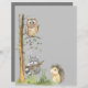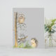 Quatro lindos animais de floresta engraçados (guaxinim, coruja, raposa, ouriço) com uma árvore e folhagem em fundo de cinza clara da coleção de animais de floresta. Nas costas, uma coruja, um guaxinim e um ouriço no espaço para a redação.
