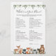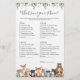 Animais da floresta temem chá de fraldas que está no seu cartão de jogo telefônico apresenta uma ilustração de animais da floresta em aquarela e verde-aquarela eucalyptus garland e uma elegante letra de estilo manuscrito.