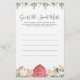 Animais de fazenda com o tema chá de fraldas adivinhação o doce jogo de bagunça apresenta uma ilustração de animais safari com aquarela e verde-aquarela eucalipto garland e uma elegante fonte de estilo manuscrito.