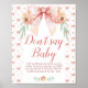 Projetado com paixão e atenção aos detalhes, este Não diga que Baby poster apresenta um belo arco pintado manualmente de aquarelas e florais perfeitos para o tema do chá de fraldas super fofo para uma menina.
