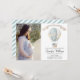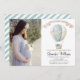 Convite de chá de bebê de balão azul de ar quente com água azul. Cartão com foto. Convite fotográfico.