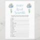 Este jogo de palavras-chá de fraldas é perfeito para um chá de fraldas ou um bebê aspergindo. Este jogo de palavras apresenta balões azuis de aquarela e botânicos de eucalipto verde-sábio. Você pode personalizar este design clicando em "Personalizar este modelo" ou se quiser alterar a fonte, as cores ou organizar os elementos design de uma forma diferente, você pode clicar em "Editar usando a Ferramenta Design". Tecla de Resposta: 1. Fralda 2. Bassinet 3 Frasco 4. 5. Pacificador 6. Mudando a Mesa 7. Animal recheado 8. Rolador 9. Borracha Ducky 10. Cobertura 11. Junto 12. Fórmula 13. Alta Presidente 14. 15. Termômetro 16. Bebê 17. Leite 18. Boies 19. Um lado 20. Urso de Pelúcia