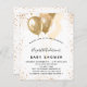 Para um Chá de fraldas elegante, neutro em relação ao gênero. Um fundo branco chic. Decorado com brilho sujo de ouro, faíscas e balões. Personalize e adicione um nome e detalhes da festa. O nome é escrito com um script de estilo manuscrito