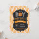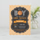 Convite para Chás de fraldas de basquete. É um rapaz. Fundo Chalkboard e Orange Chevron.