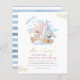 Um design de orçamento e de chá de fraldas bonitinho, com uma ilustração pintada à mão de um veleiro de madeira flutuando em ondas azuis com nuvens e gaivotas flúficas. Há um filhote de urso e um marinheiro bebê elefante! Por cima, lê-se "Ahoy!" com "é um menino!" por baixo em letras douradas. Os detalhes do evento são exibidos abaixo. Nos cantos superior direito e inferior esquerdo, há brilho de ouro falso. Cartões invertidos para um padrão de faixa de cor-d-água azul. Clique em "Personalizar" para alterar o texto. Como parte da seleção orçamentária no Zazzle, esta folha não é um tamanho de convite padrão ou qualidade de papel. Se quiser que este design num cartão de convite o encontre na nossa loja ou utilize o Zazzle Make Machine para o transferir para o produto da sua escolha. Sinta-se à vontade para me contactar para obter quaisquer perguntas relacionadas a design e não se esqueça de verificar a minha loja para obter itens correspondentes!