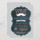 Convite para Chá de fraldas de bigode com fundo de chalkboard.Preto & Branco. Homem Pequeno. Azul e Cinza. Arco gravata. Cavalheiro...