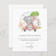 Um alternativo de 4,5 pol x 5,6 pol com preço inferior. Disponível em um STOCK DE CARTÃO SEMI-GLOSS 110 lb, que é a opção padrão (mais espesso para convites), OU um STOCK de PAPEL THINNER FINISH 80 lb FINISH (ideal para gabinetes). Os envelopes são um extra opcional e são ligeiramente maiores que o tamanho da placa. . Um elefante bonito está dirigindo um carro estilo vintage e balançando com flores, árvore e folhagem. Personalize facilmente com suas próprias palavras de obrigados e nome. Um fundo branco está em ambos os lados. Você também pode alterar as fontes e as cores do texto e do plano de fundo, se desejar, por meio da opção Clique para Personalizar mais.