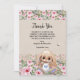 Flat Obrigado Cartão de Chá de fraldas com rosas de aquarela adoráveis e coelho recheado fofo.