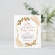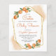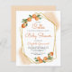 Este convite para chás de fraldas temático dos citros apresenta um quadro geométrico dourado adornado com laranjas aquáticas. O texto personalizável está no moderno roteiro laranja de escrita manual e sans negras serif. Personalize-o com o nome da futura mãe e os detalhes do chá. A parte traseira da placa é uma forma pastel de laranja que corresponde aos realces de aquarela na parte frontal. Ideal para um chá de fraldas de verão!