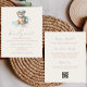 Este chá de fraldas bonito apresenta um doce ursinho de peluche aquoso em um equipamento de aviador azul, sentado em uma nuvem, acima das palavras "podemos esperar" em escrita azul. Personalize o texto com o nome da futura mãe no script azul e os detalhes na fonte sans serif em um fundo bege. O verso oferece espaço para fralda, livros para bebê e detalhes do registro, juntamente com um conveniente código QR que os convidados podem digitalizar para visitar o registro. Ideal para o chá de fraldas de um menino.