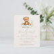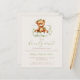 Este chá de fraldas bonito apresenta um doce ursinho de peluche aquoso sentado numa nuvem, rodeado por ranhuras de folhas verdes de eucalipto, acima das palavras "podemos esperar" em escrita verde. Personalize o texto com o nome da futura mãe em um roteiro verde e os detalhes em fontes sans serif castanhas em um fundo bege. O verso oferece espaço para fralda, livros para bebê e detalhes do registro, juntamente com um conveniente código QR que os convidados podem digitalizar para visitar o registro. Ideal para um chá de fraldas neutro em termos de gênero.