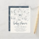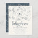 Convite de chá de fraldas com temática celestial que apresenta uma constelação de céu estrelado à noite desenhada à mão com a lua, estrelas e galáxia. "Chá de fraldas" aparece em um guião manuscrito bonito em tom azul-da-noite contra uma cor creme-claro. Como parte da seleção do orçamento aqui no Zazzle, estes convites não vêm com envelopes nem ajustado de forma suave em um envelope de tamanho padrão. O tamanho mais próximo é A6, mas haverá um intervalo de aproximadamente meio polegada. Se não se importa com a falta de humor, você poderia usar envelopes A6 tão disponíveis. Caso contrário, esse design pode ser transferido para um formato padrão 5x7 (que vem com envelopes) usando a ferramenta de transferência design. Como guia geral, a partir do momento do escrevendo, 100 convites orçamentários (incluindo um desconto por volume) custariam cerca de US$ 39, enquanto 100 convites padrão 5x7, incluindo envelopes, custariam aproximadamente US$ 135. Sua quilometragem pode variar dependendo dos códigos de promocionais disponíveis do Zazzle, das vendas em todo o site ou das mudanças nos preços.