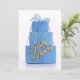 Chá de fraldas para rapaz com pacotes azuis num fundo branco com letras douradas. Designer, convites personalizados. Você pode personalizar o texto, a fonte e a cor. Altere facilmente os detalhes do seu evento.