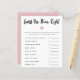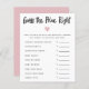 Cartão de jogo simples e moderno, com um coração cor-de-rosa. Os textos são editáveis. Um jogo perfeito para jogar durante o chá. Enumera o essencial do bebê e aos hóspedes para adivinhar o preço. Quem quer que adivinhe o preço mais próximo ganha!