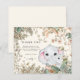 Um alternativo de 4,5 pol x 5,6 pol com preço inferior. Disponível em um STOCK DE CARTÃO SEMI-GLOSS 110 lb, que é a opção padrão (mais espesso para convites), OU um STOCK de PAPEL THINNER FINISH 80 lb FINISH (ideal para gabinetes). Os envelopes são um extra opcional e são ligeiramente maiores que o tamanho da placa. Um lindo elefante e uma folhagem e design florais para dizer que é o obrigado do seu chá de fraldas. Personalize facilmente com suas próprias palavras de obrigados e nome. Um fundo creme é neutro em ambos os lados.
