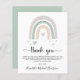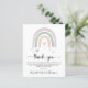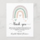 Cartões de agradecimentos moderno de chá de fraldas boho, econômico, com uma cor d'água abstrato de um arco-íris verde, laranja e lavanda com corações e obrigado em um roteiro de na moda. Personalize o seu obrigado e adicione a sua assinatura no script.