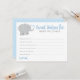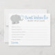 Cartão personalizado de "Desejos Doce para Bebê" para um chá de fraldas apresenta um elefante bebê com placas em forma de coração. O sotaque com padrão de bolinhas aparece na parte traseira da placa. Esquema de cor azul claro e cinza.