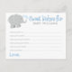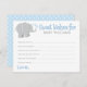 Cartão personalizado de "Desejos Doce para Bebê" para um chá de fraldas apresenta um elefante bebê com placas em forma de coração. O sotaque com padrão de bolinhas aparece na parte traseira da placa. Esquema de cor azul claro e cinza.