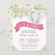 Este convite para chás de fraldas de elefante de menina fofa apresenta flores bonito e adoráveis elefantes de bebês. Bonitas pintas moles, verdes e azuis acrescentam uma sensação de safena adorável.
