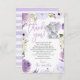 Chá de fraldas de elefante roxo obrigado cartas de uma doce menina! Estas cartas de agradecimento apresentam um lindo elefante bebê com uma coroa de flores.