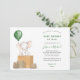 Um chá de fraldas por correio é perfeito para aqueles que vivem uma longa distância dos entes queridos, mas ainda querem chá para que os pais estejam com amor e presentes para se prepararem para a chegada do seu bebê. Este longo Chá de fraldas à distância por convite por correio apresenta um elefante a aquarela com um balão verde sentado numa pilha de caixas de envio. Personalize com suas informações ou clique em "Clique para personalizar mais" para editar estilos de fonte, tamanho e cores.