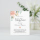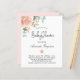 Para um Chá de fraldas, comemorando uma menina. Um fundo branco chic. Decorados com ouro rosa e rosa, flor, verde-eucalipto, folhas, ouro, cor-de-rosa-água, cor-de-rosa, cor-de-rosa, Personalize e adicione um nome e detalhes da parte. O texto: Chá de fraldas e o nome da mãe a ser é escrito com um moderno estilo escrito à mão. Traseira: cor de fundo rosa dourada.