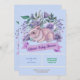 Este design apresenta um coelho bonito desenhado à mão Em folhas de folhagem verde e florais cor-de-água púrpura e azul claro.
