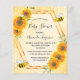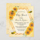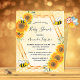 Elegante, chá de fraldas divertido, neutro em relação ao gênero. Fundo amarelo com um padrão de colmeia de ouro. Com uma falsa estrutura geométrica dourada. Amarelo, girassóis cor de laranja e abelhas-deslumbradas. Com o texto: Chá de fraldas e o nome da mamãe a ser gravada na frente com um moderno script de estilo escrito à mão. Letras negras. Traseira: padrão amarelo de colmeia branca e uma abelha-lombo sorridente
